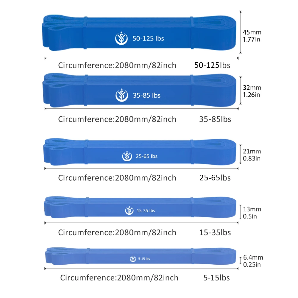 Egendesignet logo lang lategestrekkbåndsett (5 nivåer: 5-125 lbs) - Hjelp til pull-up og treningsstudio strekk for trening